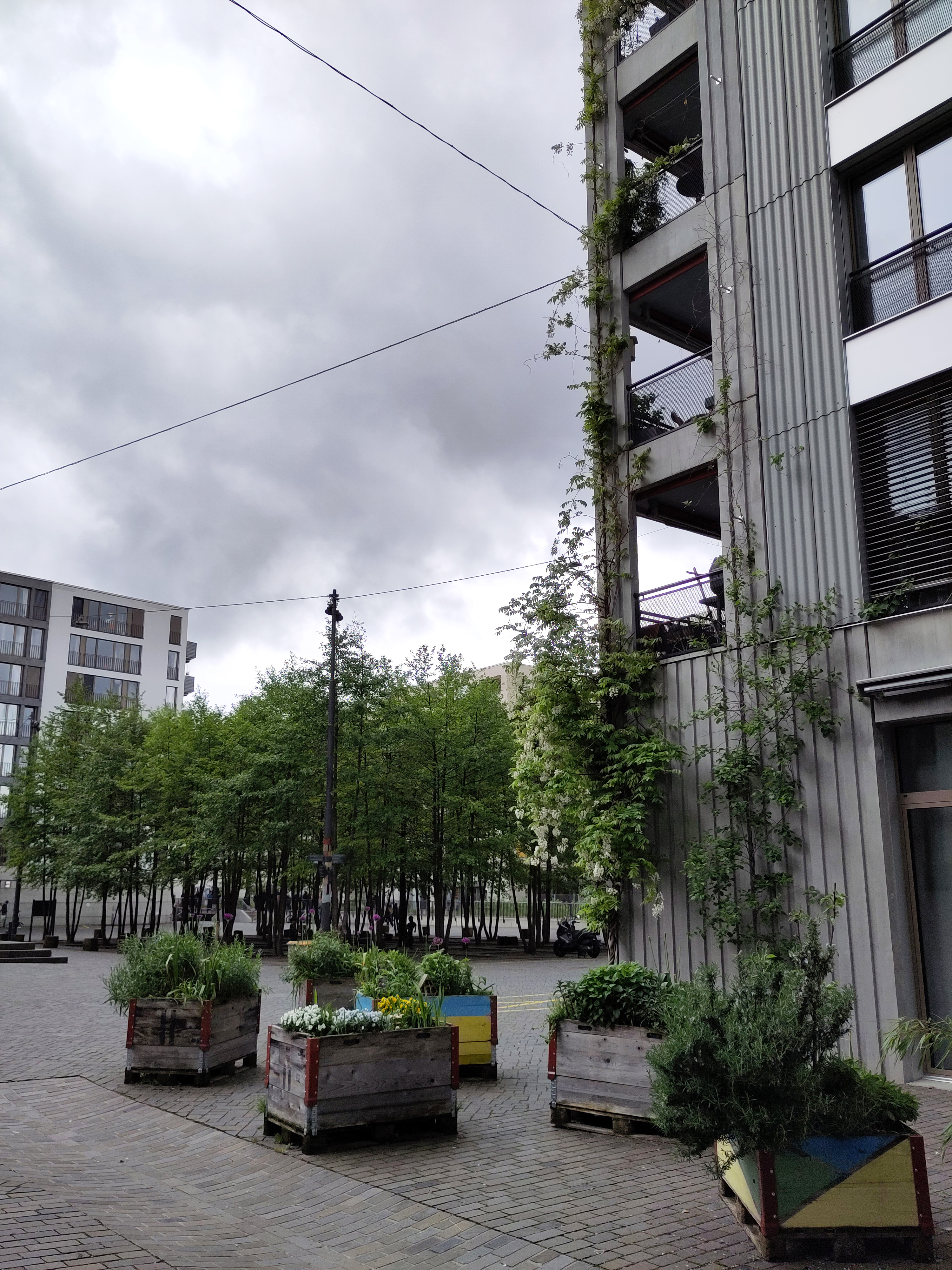 Plante un arbre, installe des bacs à fleurs avec des plantes sauvages et crée des bordures avec des nombreuses structures.