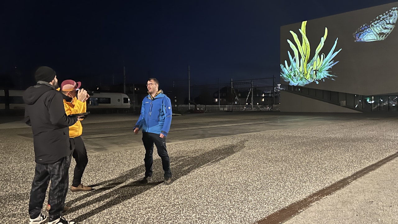 Ce qui semble bref dans la vidéo de campagne a en réalité demandé deux nuits d’efforts. Une équipe a sillonné la Suisse pour projeter la vision de Redonner vie sur des lieux gris. Au milieu de la nuit, on a ainsi pu constater tout le potentiel que recèlent nos zones habitées pour plus de nature.