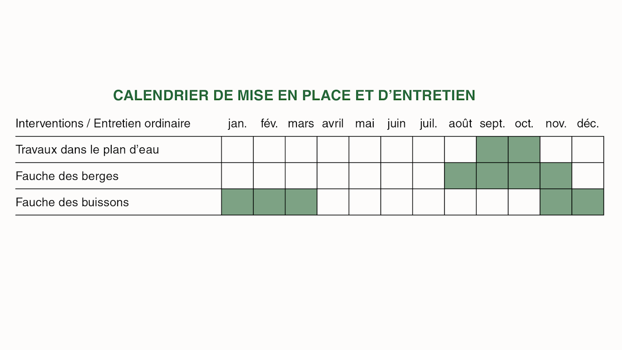 Pas d’intervention dans le plan d’eau de mars à août.