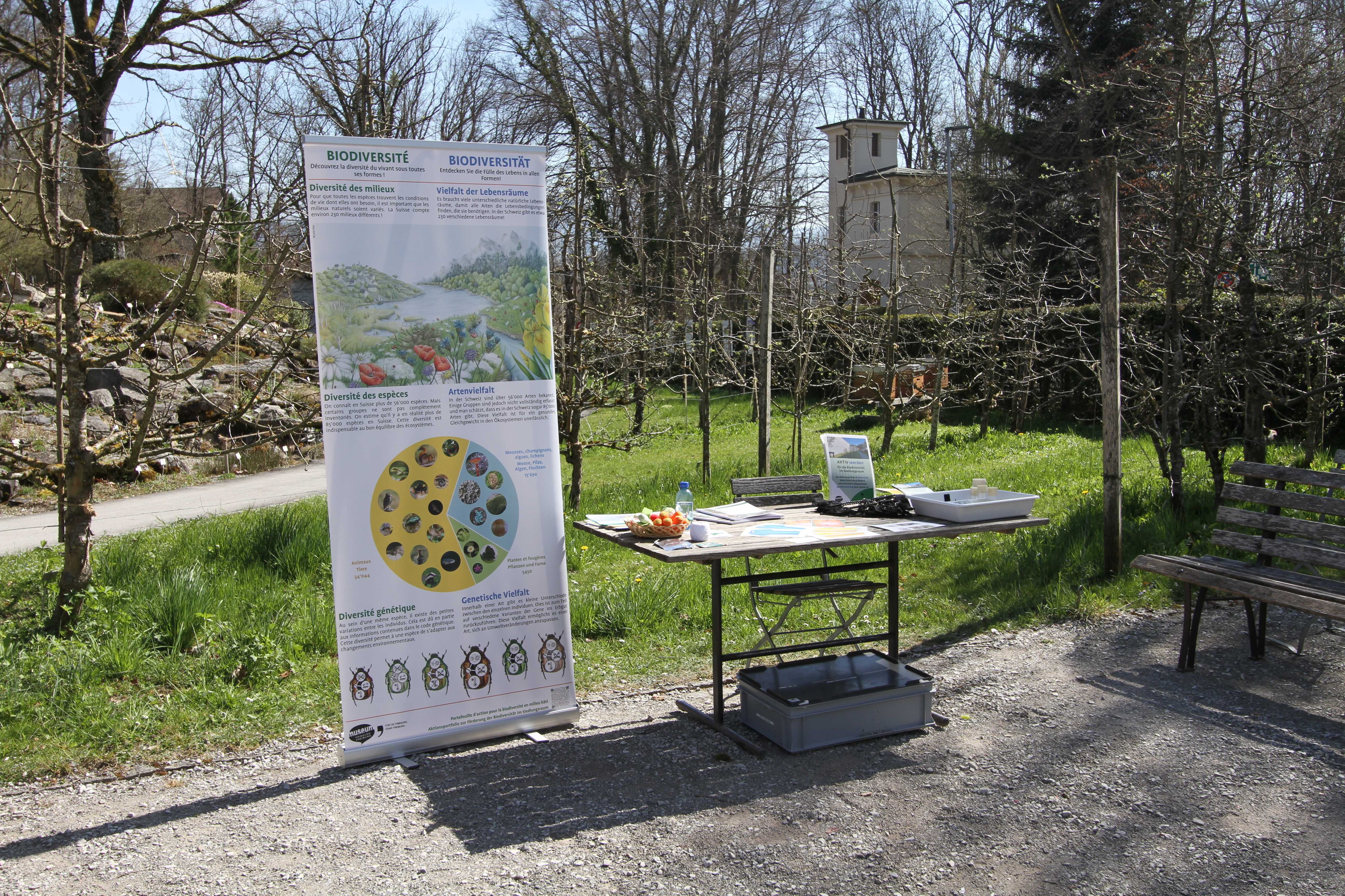 Vous souhaitez sensibiliser les habitants et habitantes de votre commune du Canton de Fribourg à la thématique de la biodiversité ? Nous mettons à votre disposition un stand d’information, du matériel, des jeux, des activités et des documents. Ce dispositif animé par un·e professionel·le permet à tout un chacun de s’informer sur la nature et d’agir en sa faveur.