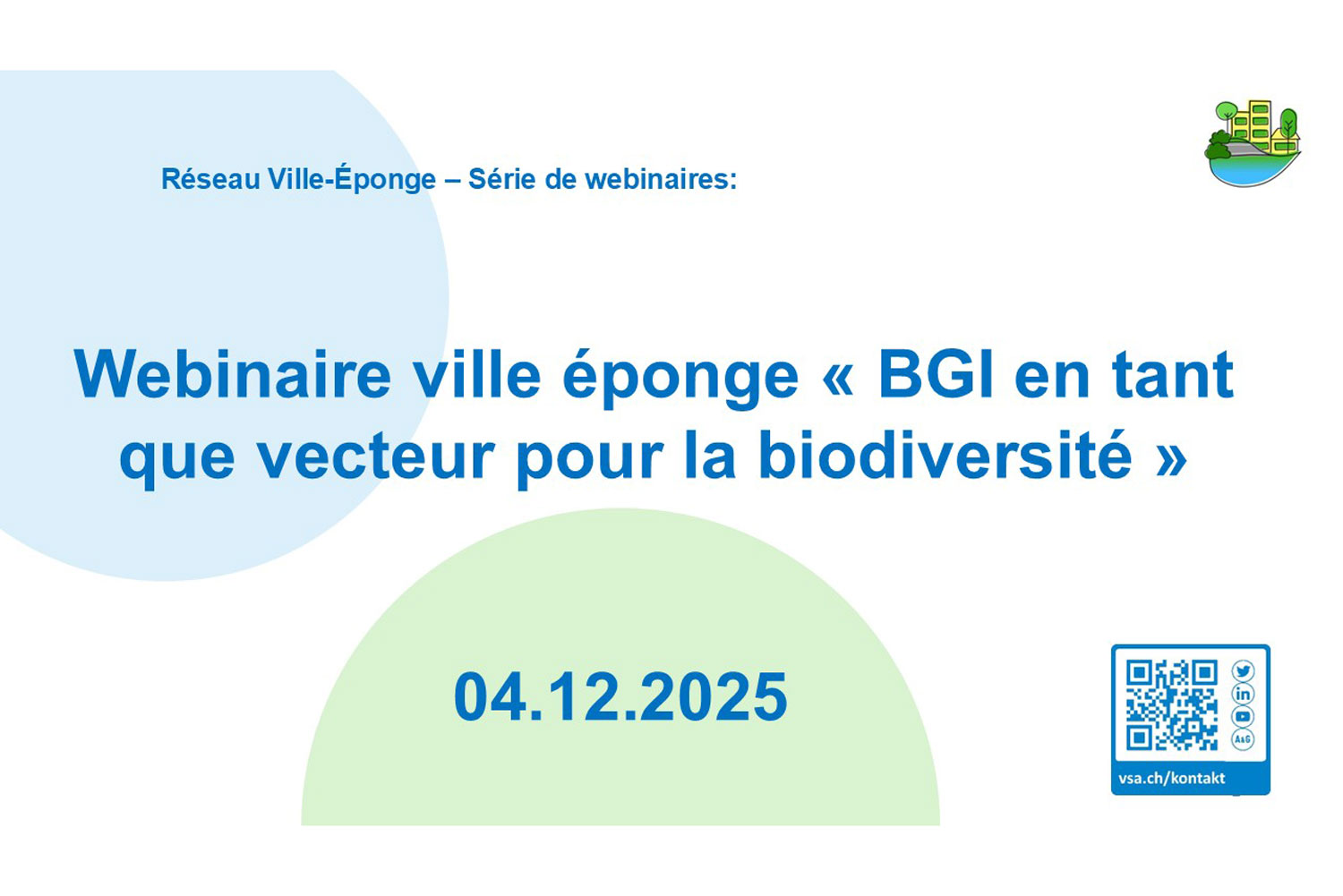 Le webinaire présente le potentiel du principe de la ville éponge pour la promotion de la biodiversité et résume les conclusions scientifiques sur les avantages des éléments bleus et verts pour la biodiversité urbaine. La ville de Vevey présente, à titre d’exemple pratique, son approche de renforcement de la végétalisation avec le Masterplan du quartier de Plan-Dessus.